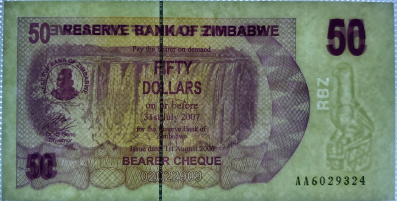 Zimbabwe P41 50 Dollars 2006