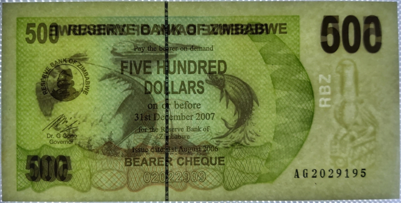 Zimbabwe P43 500 Dollar 2006