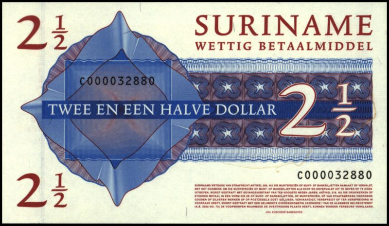 Suriname - SRD PLSD1.a 2 1/2 Dollars 2004
