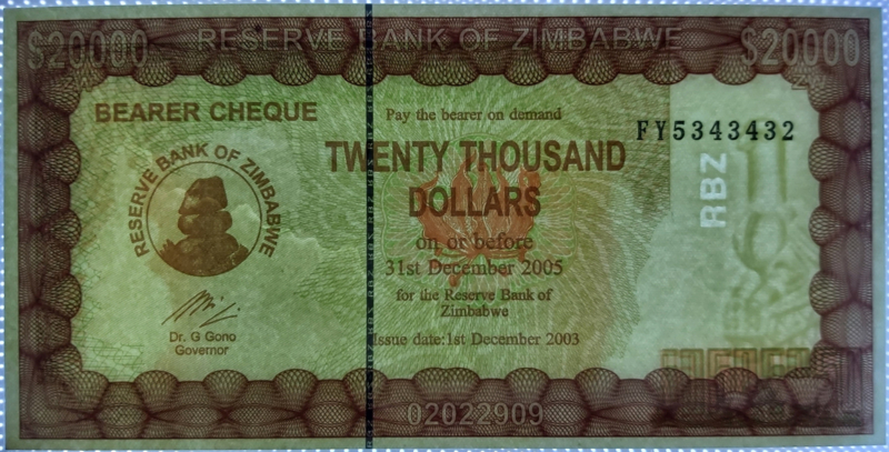 Zimbabwe P23 20.000 Dollars 2005