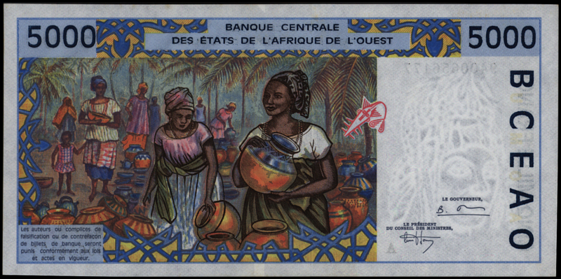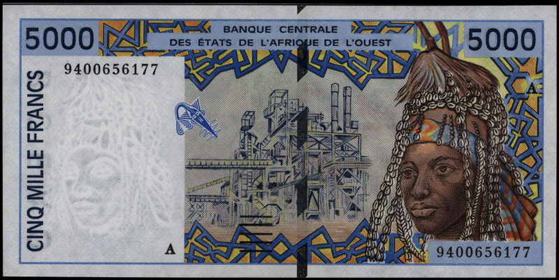 West Afrikaanse Staten - Ivory coast P113A.c 5.000 Francs 1994