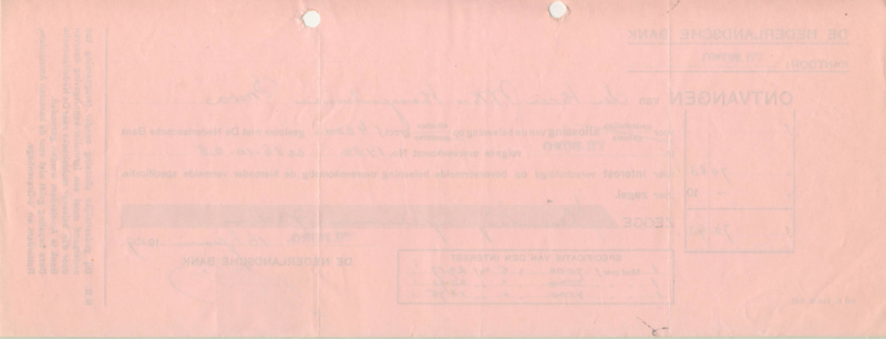 Tilburg, Tilburg, De Nederlandse Bank, Bewijs gedeeltelijke aflossing groot ƒ 1.000,--. Gezegeld ƒ -,10