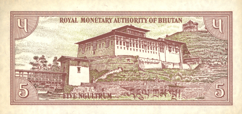 Azië, Bhutan, 5 Ngultrums, Model: 1985 (No date) (#7940).