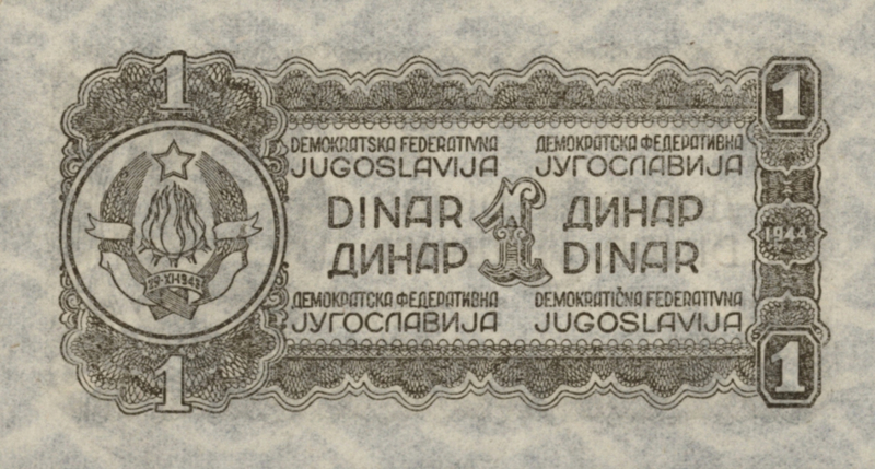Europa, Joegoslavië, 1 Dinar, Model: 1944 (#7752).