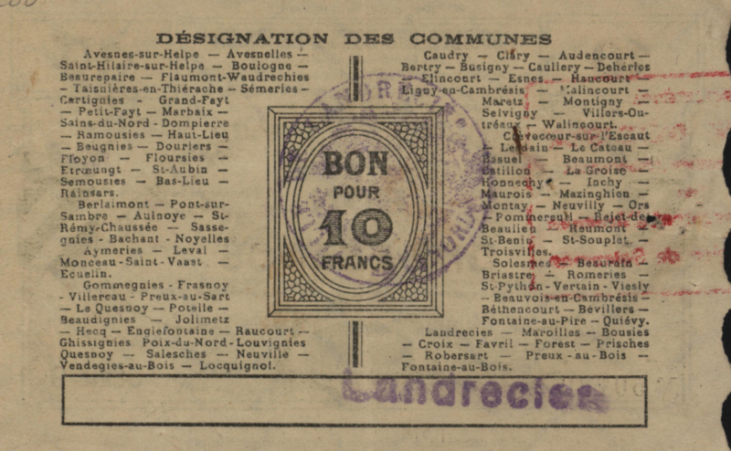Europa, Frankrijk - Noodgeld - Avesnes, 10 Francs, Model: 1916 (#17808).