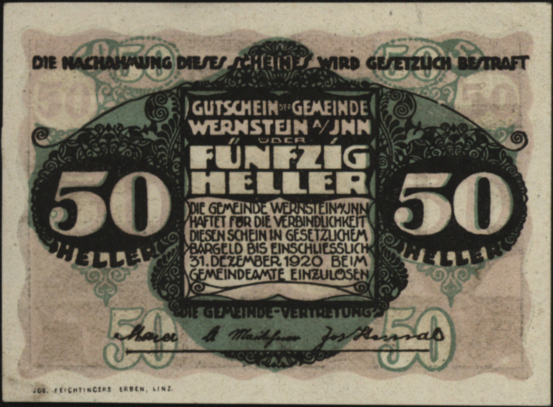 Oostenrijk - Noodgeld - Wernstein KK. 1174.I 50 Heller 1920 (No date)