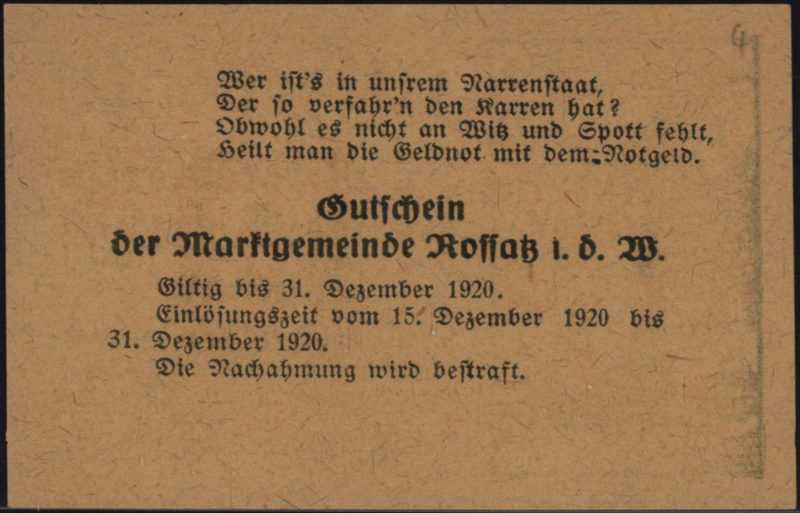 Oostenrijk - Noodgeld - Rossatz in der Wachau KK848 10 Heller 1920