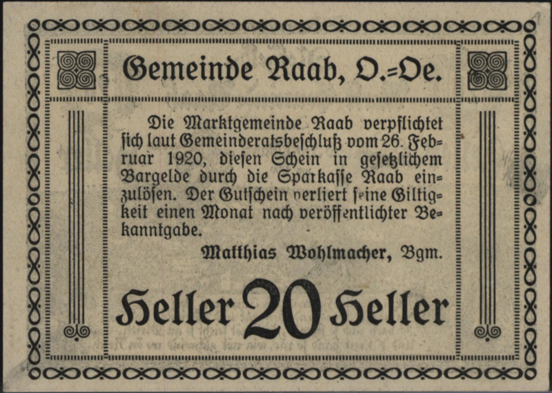 Oostenrijk - Noodgeld - Raab KK: 805 20 Heller 1920