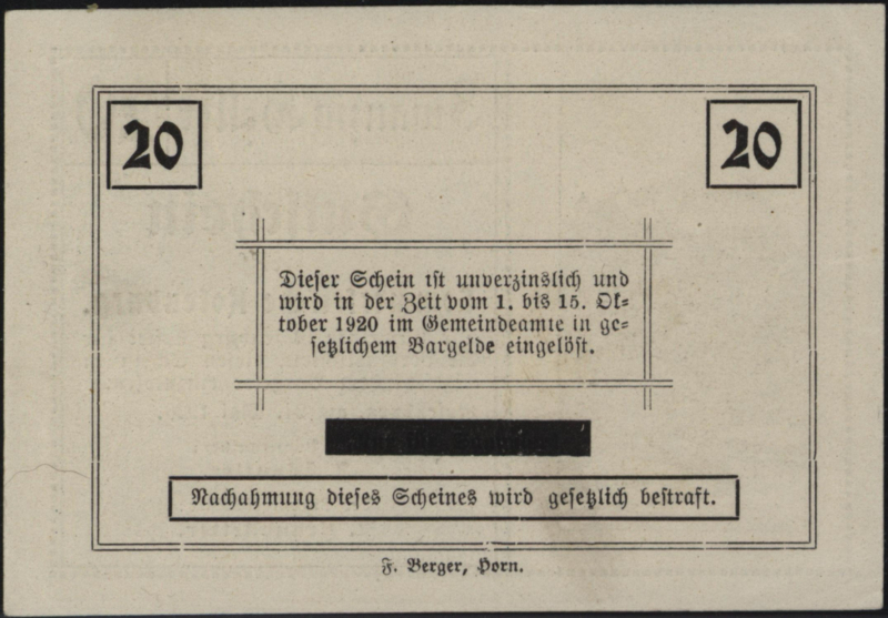 Oostenrijk - Noodgeld - Rosenburg KK846 20 Heller 1920