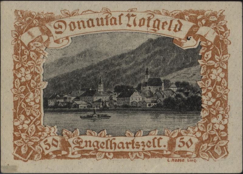 | Bijzonderheden: | Gemeinde Engelhardszell. Ohne auflage, Omrahmung Hellbraun. W/o edition. Light brown frame. St. Aegidi. Notgeld der oberösterr. |