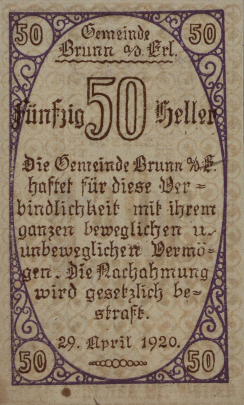 Oostenrijk - Noodgeld - Brunn an der Erlauf KK.: 110 50 Heller 1920