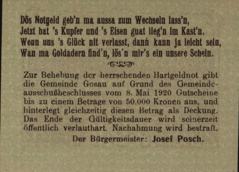 Oostenrijk - Noodgeld - Gosau KK.:251 20 Heller 1920
