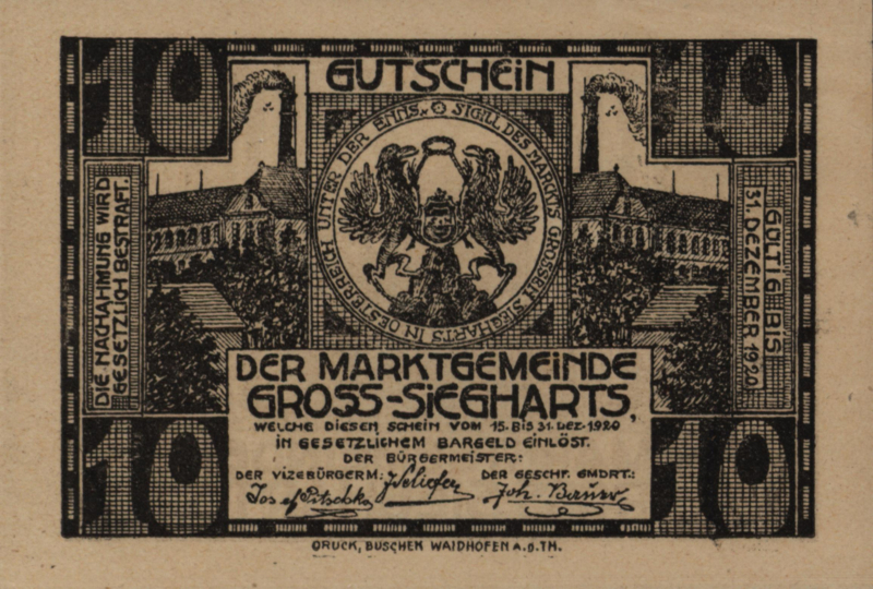 Oostenrijk - Noodgeld - Gross-Siegharts KK.:297 10 Heller 1920