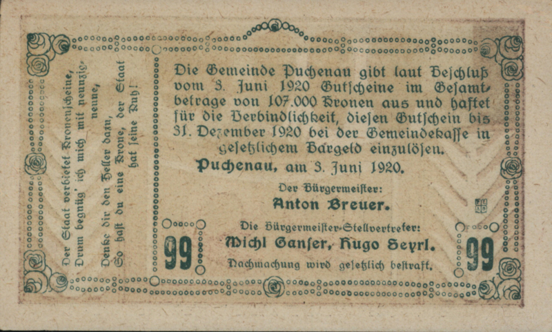 Oostenrijk - Noodgeld - Puchenau KK.:788 99 Heller 1920