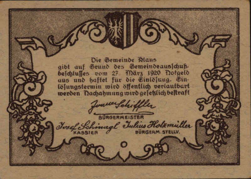Oostenrijk - Noodgeld - Klaus KK.:454 50 Heller 1920