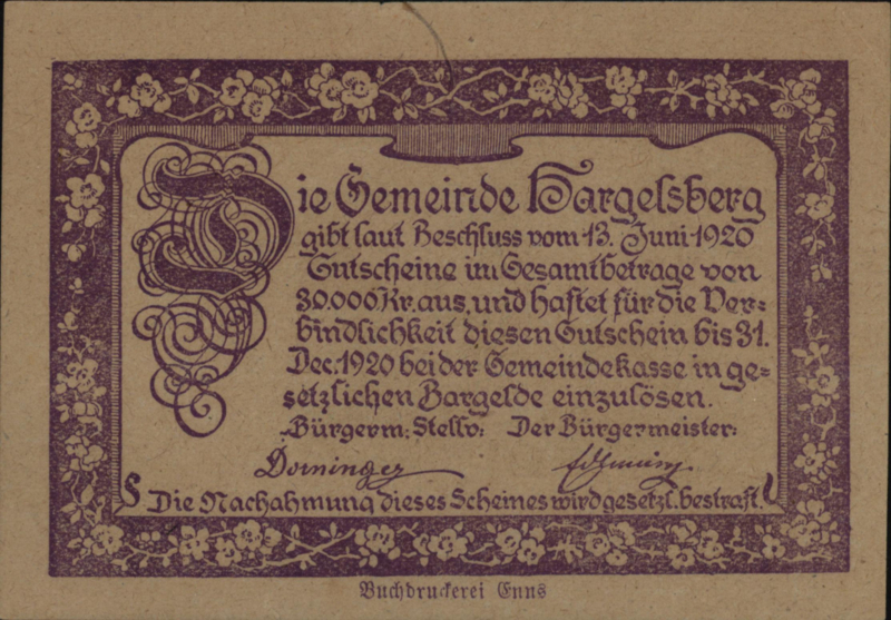 Oostenrijk - Noodgeld - Hargelsberg KK.:349 20 Heller 1920