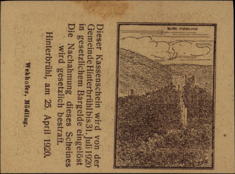 Oostenrijk - Noodgeld - Hinterbrühl KK.:376 10 Heller 1920