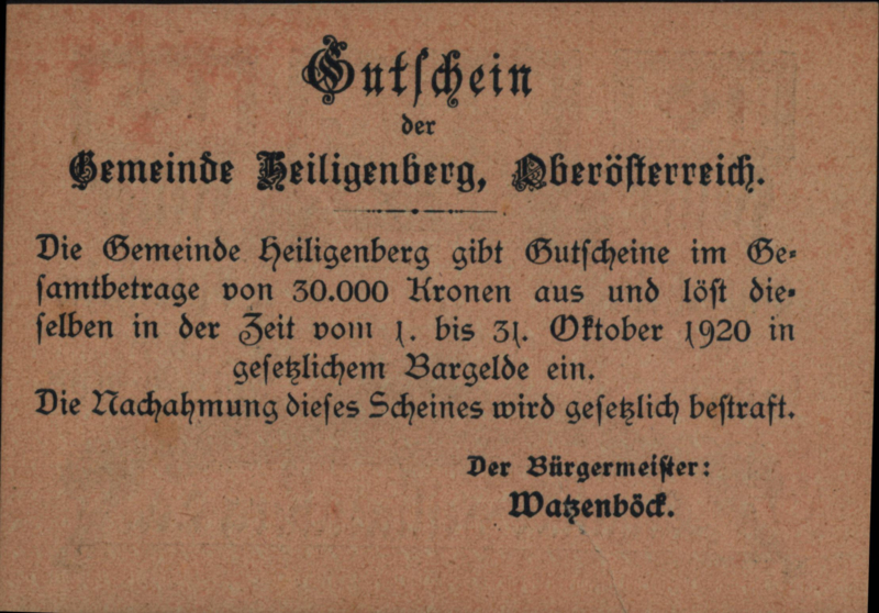 Oostenrijk - Noodgeld - Heiligenberg KK.:S361 10 Heller 1920