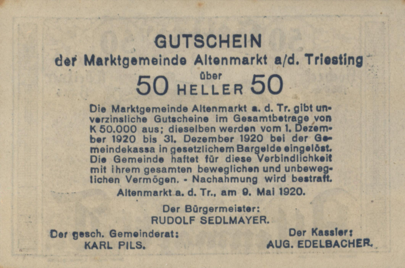 Oostenrijk - Noodgeld - Altenmarkt KK.:29 50 Heller 1920