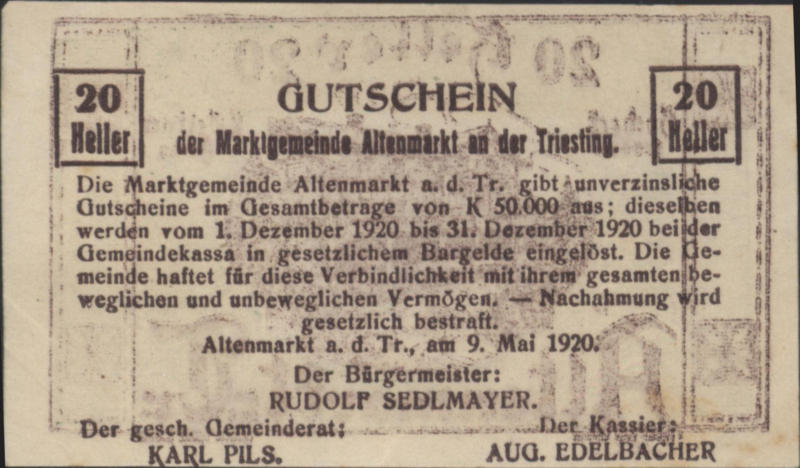 Oostenrijk - Noodgeld - Altenmarkt KK.:29 20 Heller 1920