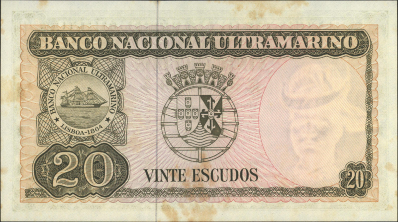 | Bijzonderheden: | Banco Nacional Ultramarino. Signs Samuel Rodrigues Sanches/Francisco José Vieira Machado |