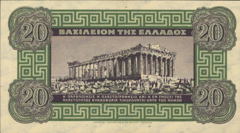 Griekenland P315 20 ΔΡΑΧΜΑΙ / Drachmes / Drachmai 1940