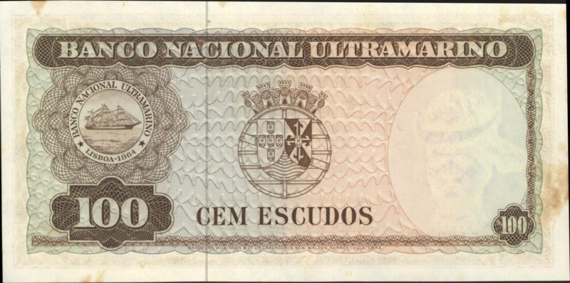 | Bijzonderheden: | Banco Nacional Ultramarino. Minor foxing. Signs Luís Pereira Coutinho / Francisco José Vieira Machado |