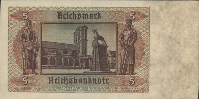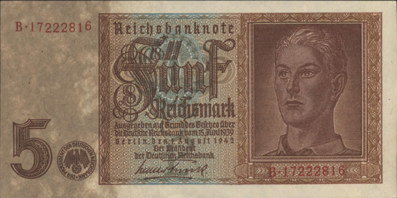 Duitsland P186 5 Reichsmark 1942 MISDRUK