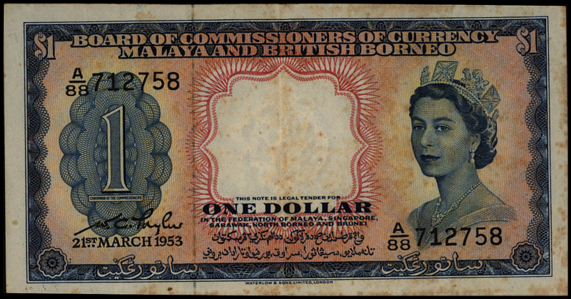 Malaya en Brits Borneo P1.a 1 Dollar 1953Malaya en Brits Borneo / Malaya and British Borneo, 1 Dollar. Type jaar/year: [1953]