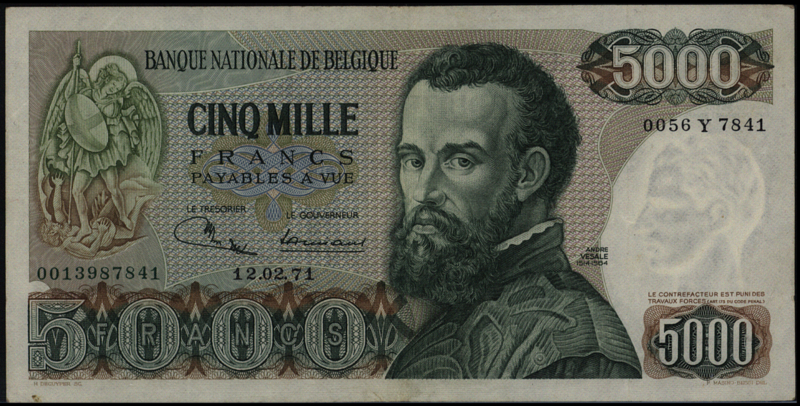 België - Banque Nationale de P137.a 5.000 Francs 1971België / Belgium, 5.000 Francs / 5,000 Francs. Type jaar/year: [1971-1977]