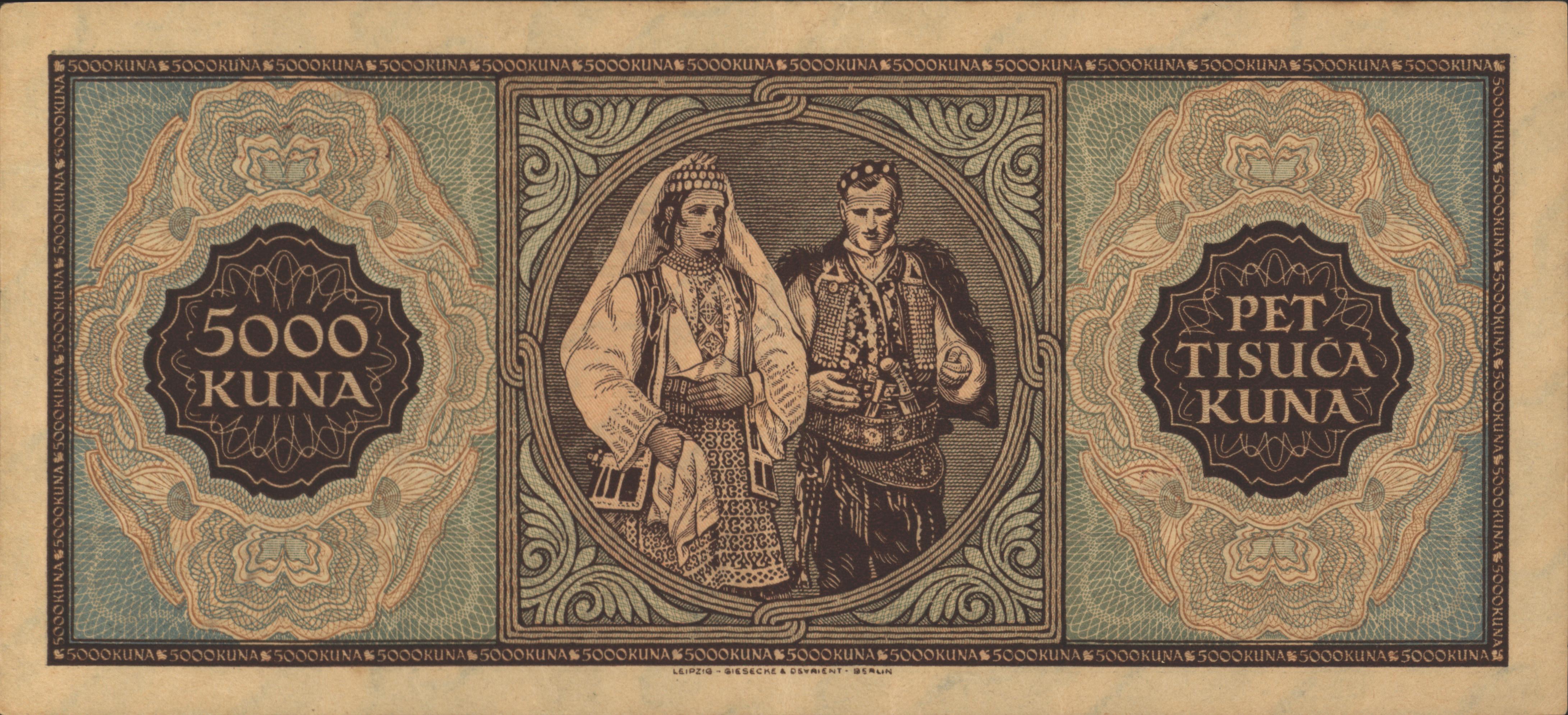 Croatia - Hrvatska Drzavna Banka | Croatian State Bank P13 5,000 Kuna 1943