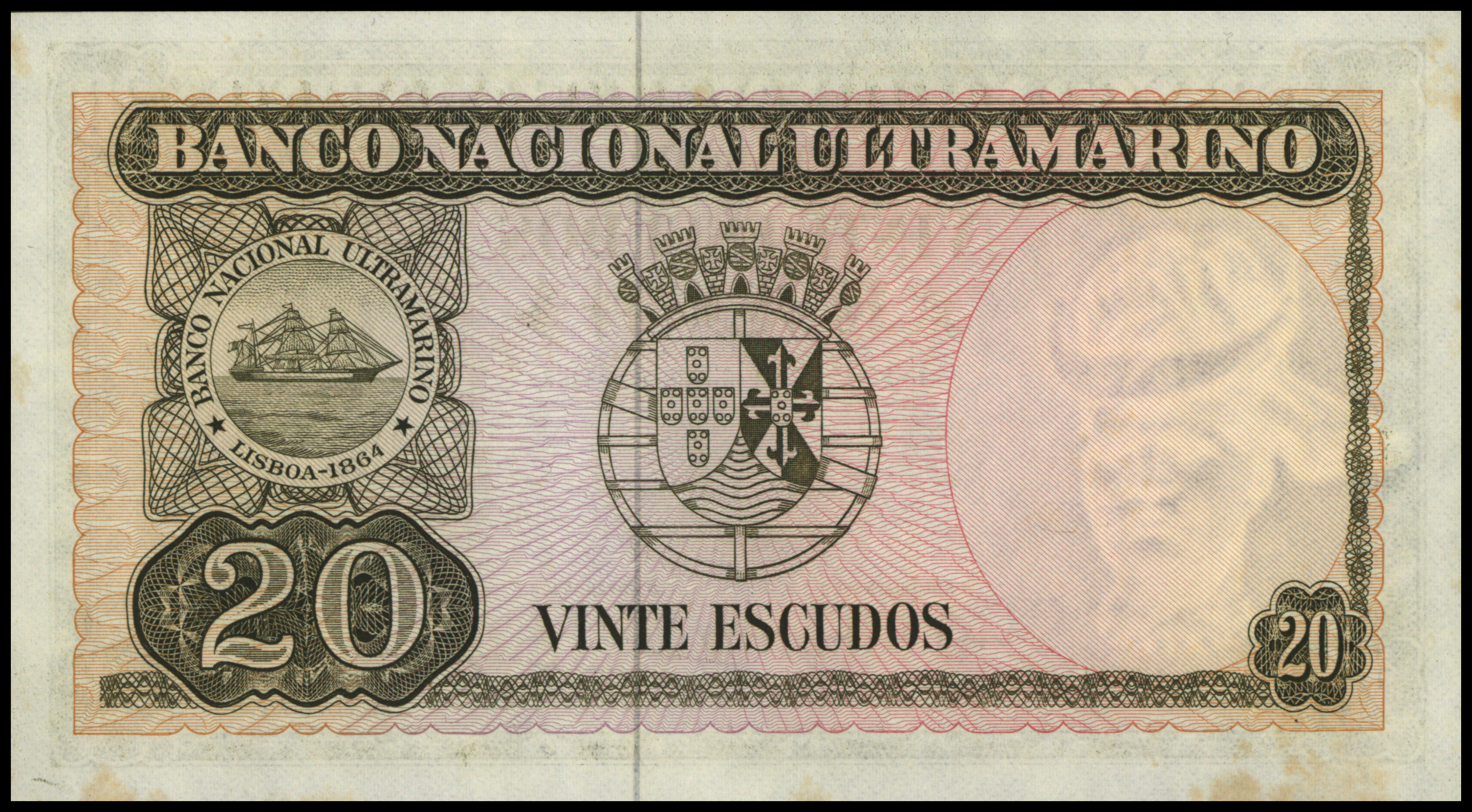 | Remarks: | Banco Nacional Ultramarino. Signs Pedro de Mascarenhas Gaivão/Francisco José Vieira Machado. Minor foxing |