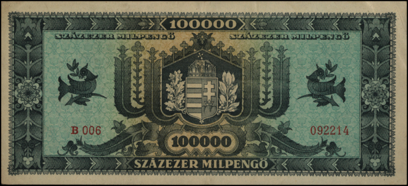 Hungary P127 Szazezer MilPengo (100,000,000) 1946