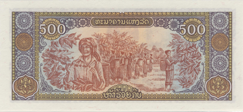 | Remarks: | 1988 MC. Front: Workers adjusting irigation pipe; electrical power towers; coat of arms; tractors. Back: Workers harvesting coffee beans in Boliven Plateau. No secu thread. Wmk: Hammer & Sickle with star. |