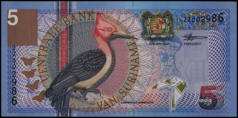 Suriname PLS22.1.a1.R 5 Gulden 2000 REPLACEMENT PMG64