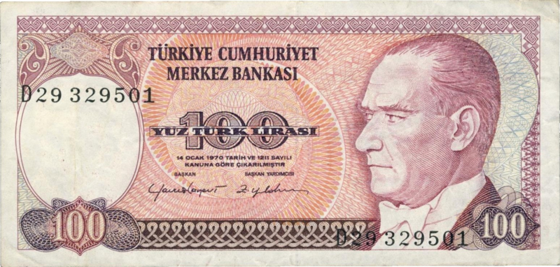 Turkey P194 100 Lira 1970
