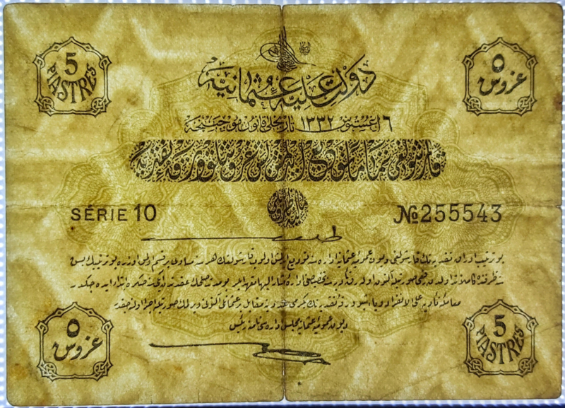 Turkey - Ottomaanse rijk/Ottoman Empire P87 5 Piastres 1916