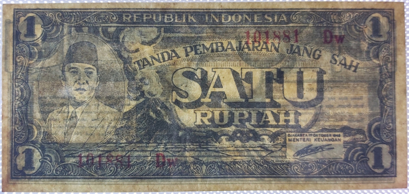 | Remarks: | ORI I. 1945-1949.. Sign Maramis Tanda Pembajaran Jang Sah. Satu Rupiah. |