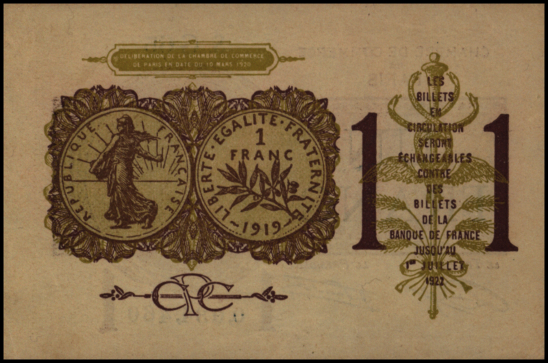 France - Emergency - Paris - Chambre de Commerce Pirot:97.23 1 Franc 1920