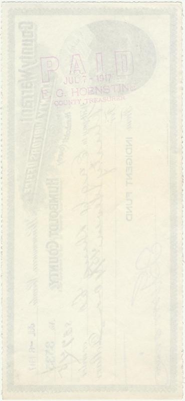 Nevada, County Warrant, Indegent Fund, Winnemucca. Jul-6, 1917