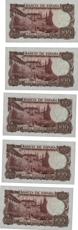 Spain P152 100 Pesetas 1970 [5 consecutive]
