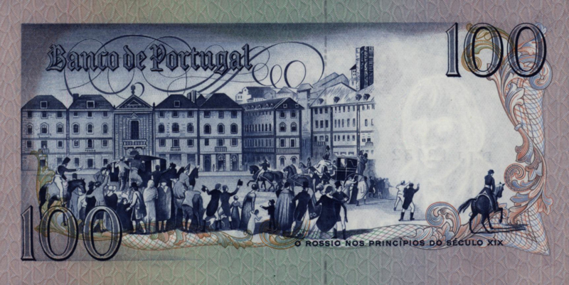 | Remarks: | Dk.blue on mc unpt. M.M. B. du Bocage seated r. Back: Early 19 century scene of Rossio Square in Lisbon. Wmk: Bocage.. |