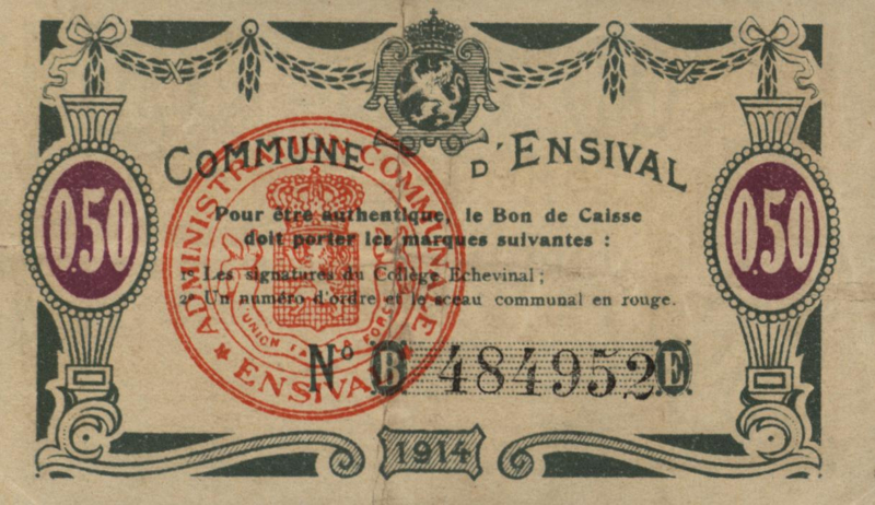 Belgium - Emergency issues - Commune d'Ensival AB.EN15 50 Centimes 1914
