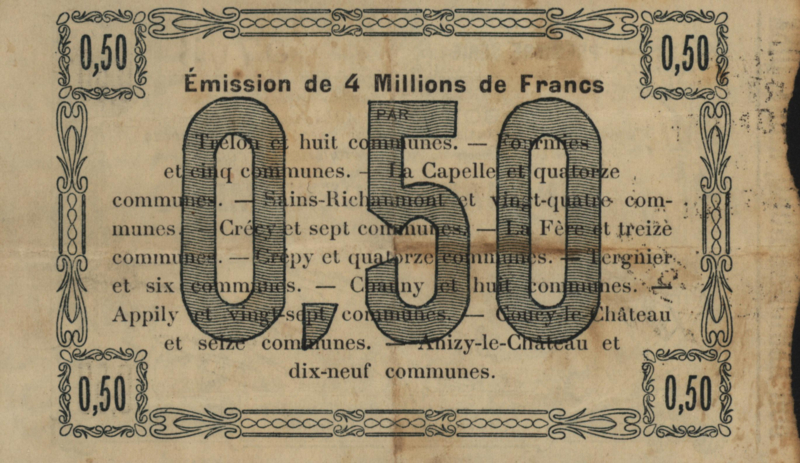 Europe, France - Emergency - Départements du Nord de l'Aisne et de l'Oise, 50 Centimes, Type: 1915 (#17812).