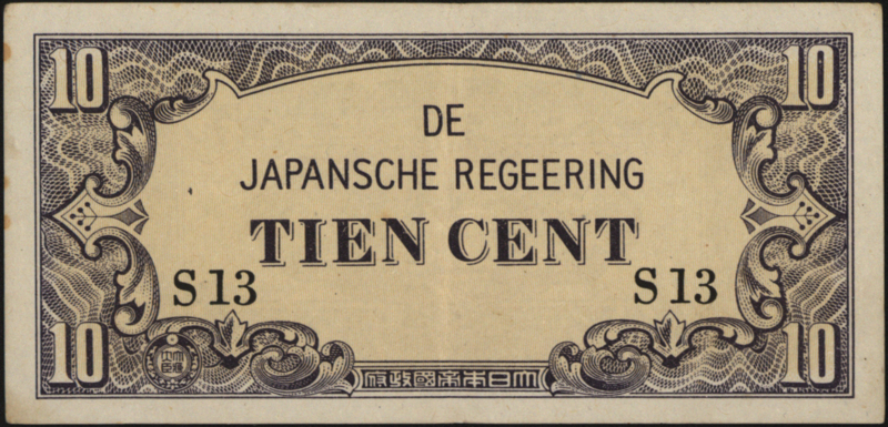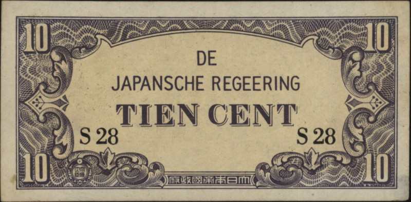 Netherlands Indies, Japanese Occupation 1942-1945 PLNI25.3/P121.a 10 Cent 1942 (No date)