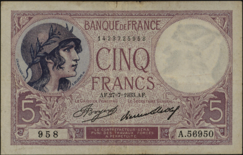 France P72 5 Francs 1933