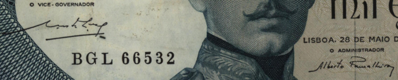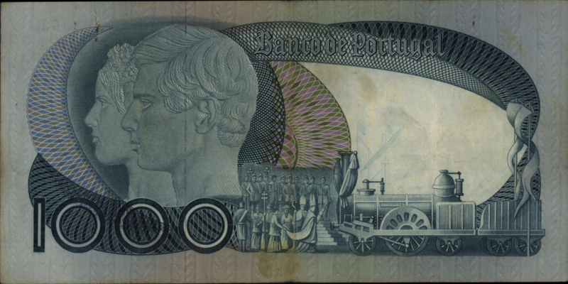 | Remarks: | O VICE-GOVERNADOR. Blue and black on mc npt. Pedro V at r. Rev: Conjoined busts at left, ceremonial opening of 1st railway at bottom ctr and right. Wmk: Pedro V.. |