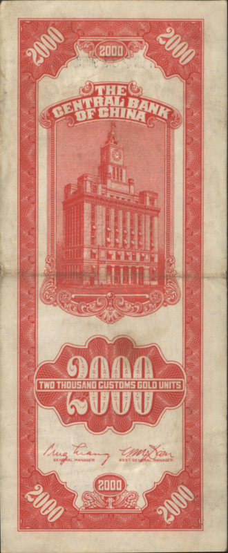 China P357 2,000 Customs Gold Units 1948