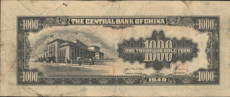 China P412 1,000 Gold Yuan 1949