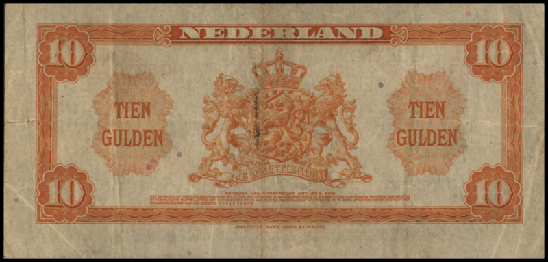 Netherlands PL41.a 10 Gulden 1943